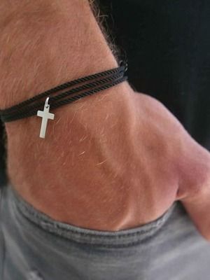 Браслеты являются одним из любимых видов украшений среди мужчин, так как подходят они всем без исключения и можно без труда подобрать идеальный размер. Браслеты также чаще всего дарят в качестве подарка. Вариативность моделей большая. Крест в браслете может быть как дополнительной, так и центральной частью. Чаще всего за основу украшения берется вощеный шнур или ювелирная леска. В качестве дополнительных элементов-компаньонов выбирают самоцветы, и браслет на резинке легко становится частью образа.