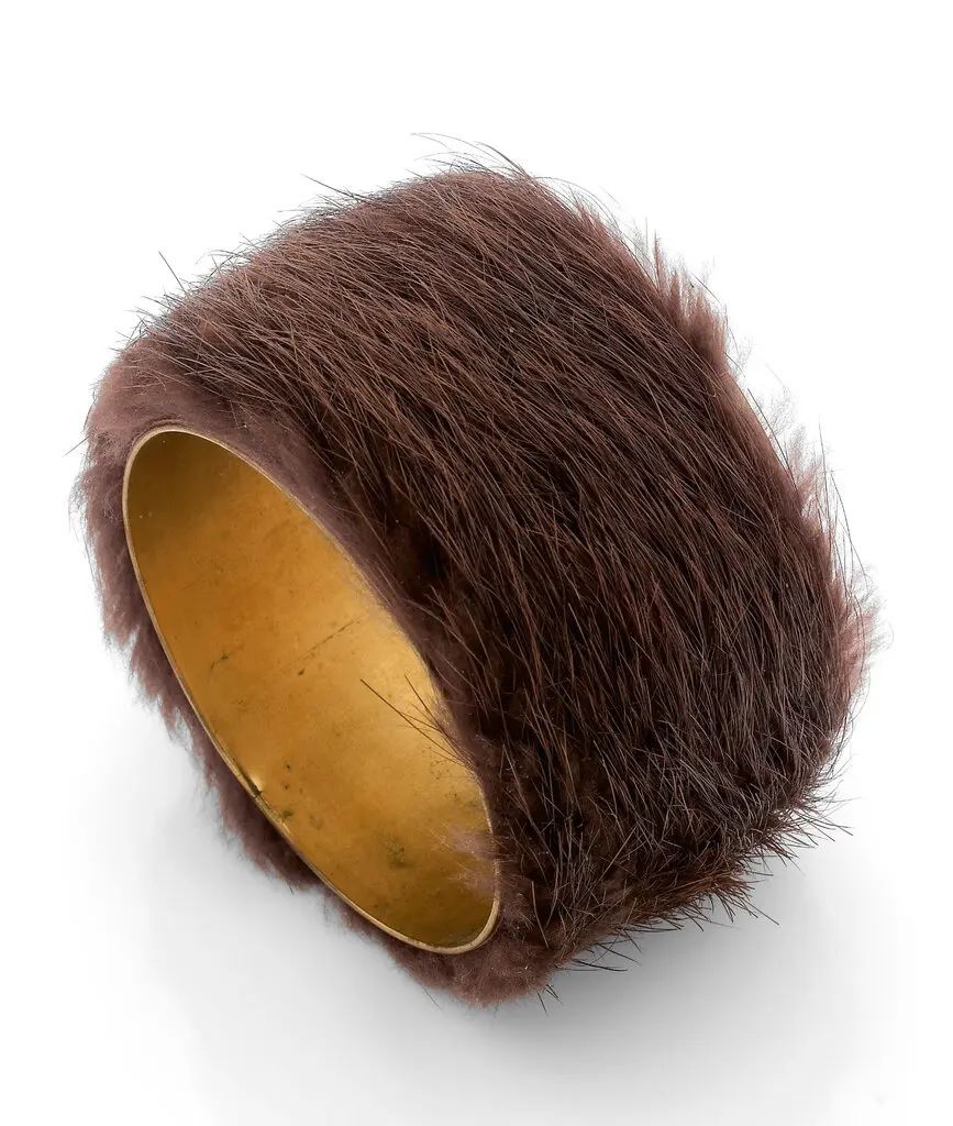 Среди экспонатов – латунный браслет с меховой отделкой 1936 года работы Мерет Оппенгейм, швейцарской художницы-сюрреалистки немецкого происхождения (частная коллекция, Париж):