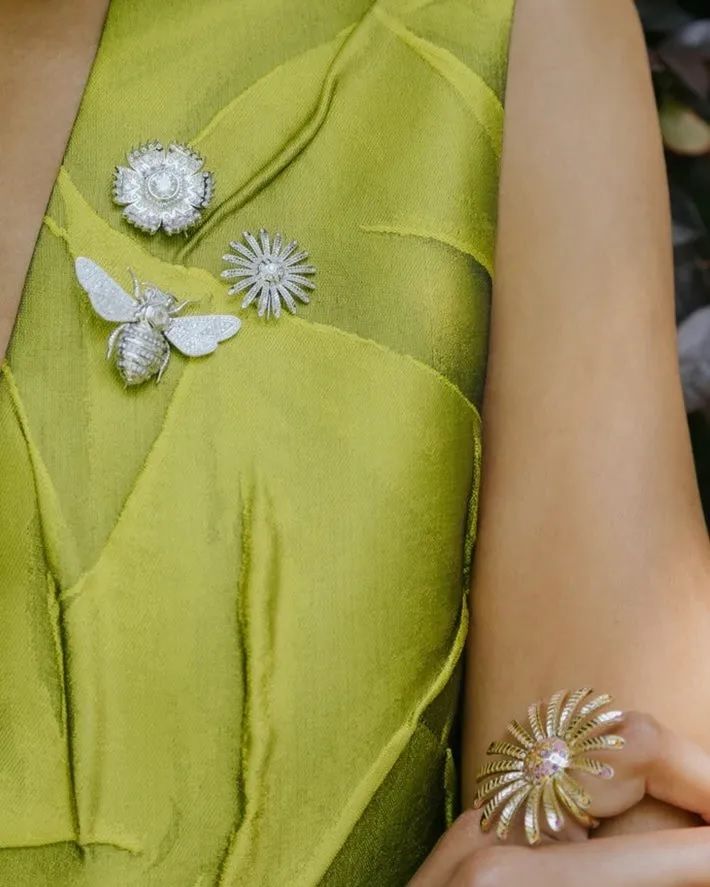«Я вдохновилась на создание украшений с бриллиантовыми насекомыми после посещения выставки Марион Фазель «Прекрасные создания» в Музее естественной истории, – рассказывает Харвелл Годфри в интервью. – Это стало ярким напоминанием о том, что мотивы насекомых существовали в ювелирных изделиях веками, в разных культурах и во все времена».