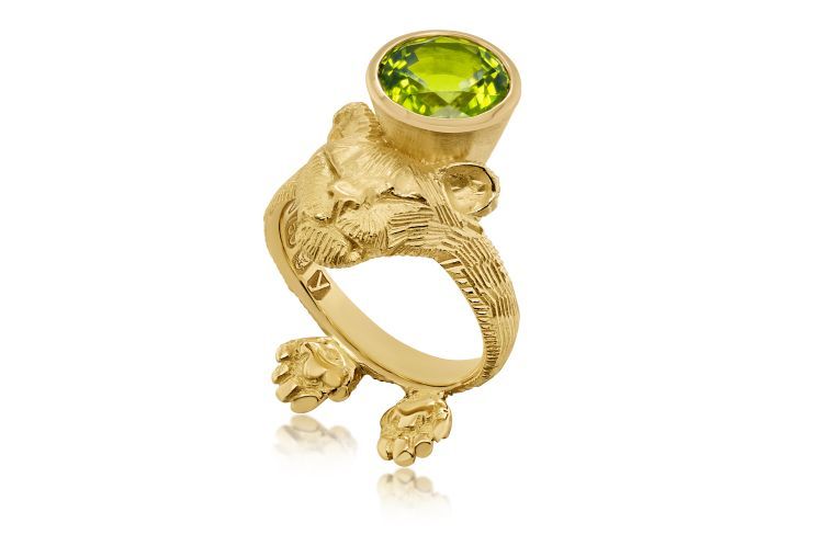 Кольцо Joy BC Sekhmet из переработанного 18-каратного желтого золота с необработанным хризолитом Fuli gemstones весом 3,86 карата (Joy BC):