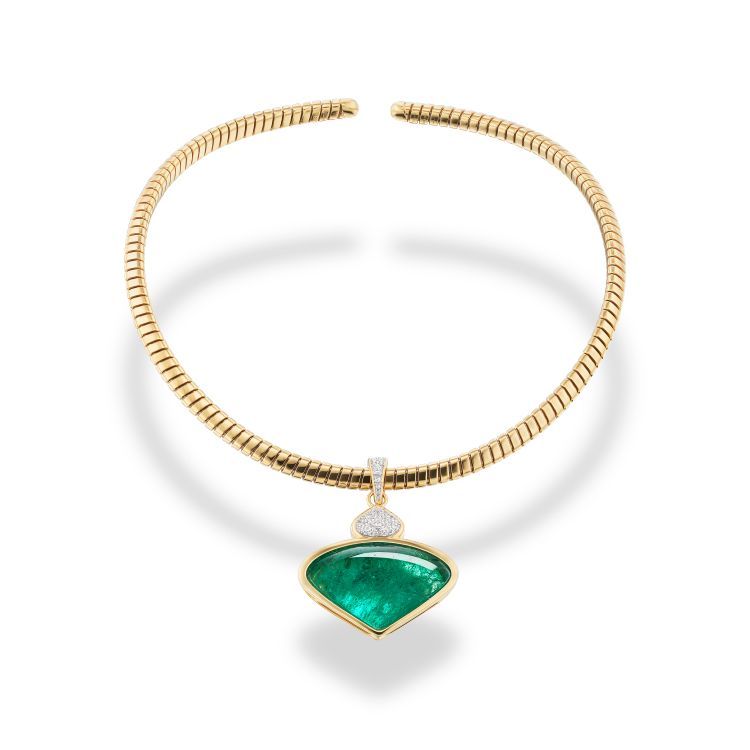 Чокер Marina B Tubogas из 18-каратного желтого золота с бриллиантами и изумрудом Muzo (Marina B):