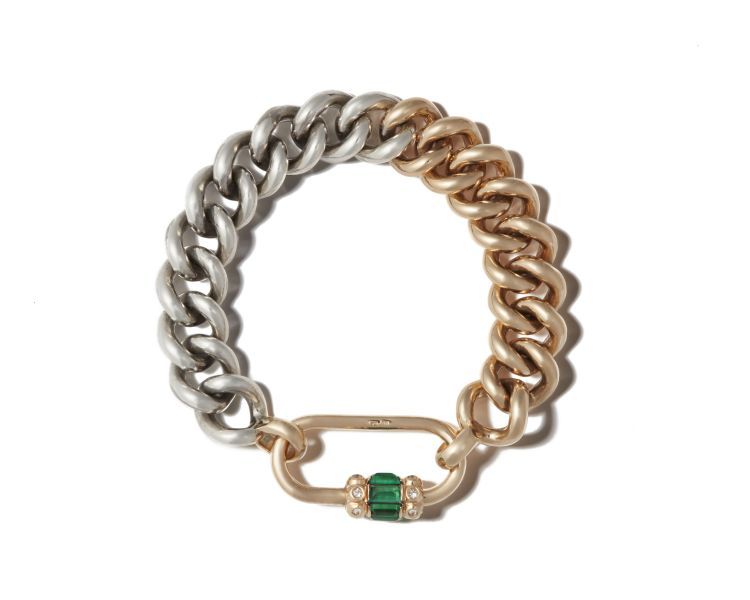 Браслет Marla Aaron Hatshepsut Lock из стерлингового серебра и 14-каратного золота с изумрудом весом 1,71 карата и бриллиантами (Marla Aaron):