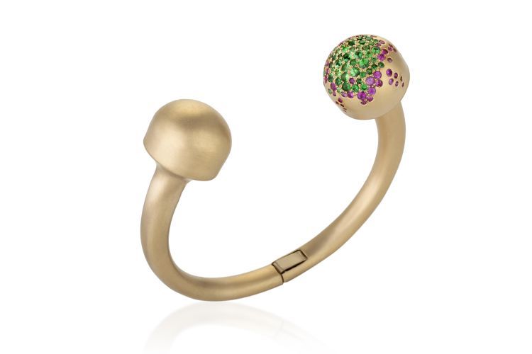 Манжета Nada Ghazal My Muse Cocoon Bougainvillea из 18-каратного золота с цаворитами и розовыми сапфирами (Nada Ghazal):