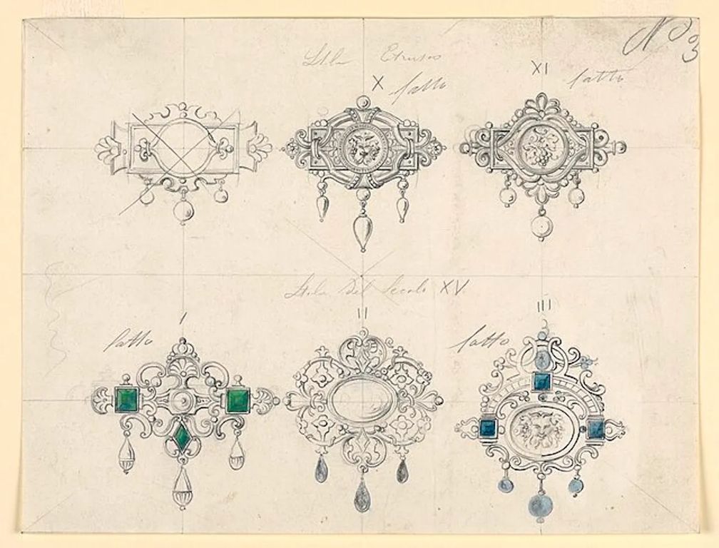 Дизайн шести брошей с сатирами, 1870-1880 гг. (Wikimedia Commons):