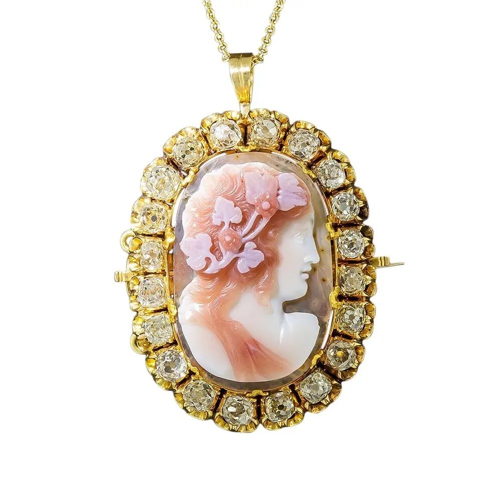 Брошь-камея с бриллиантами позднего георгианского/раннего Викторианского периода: