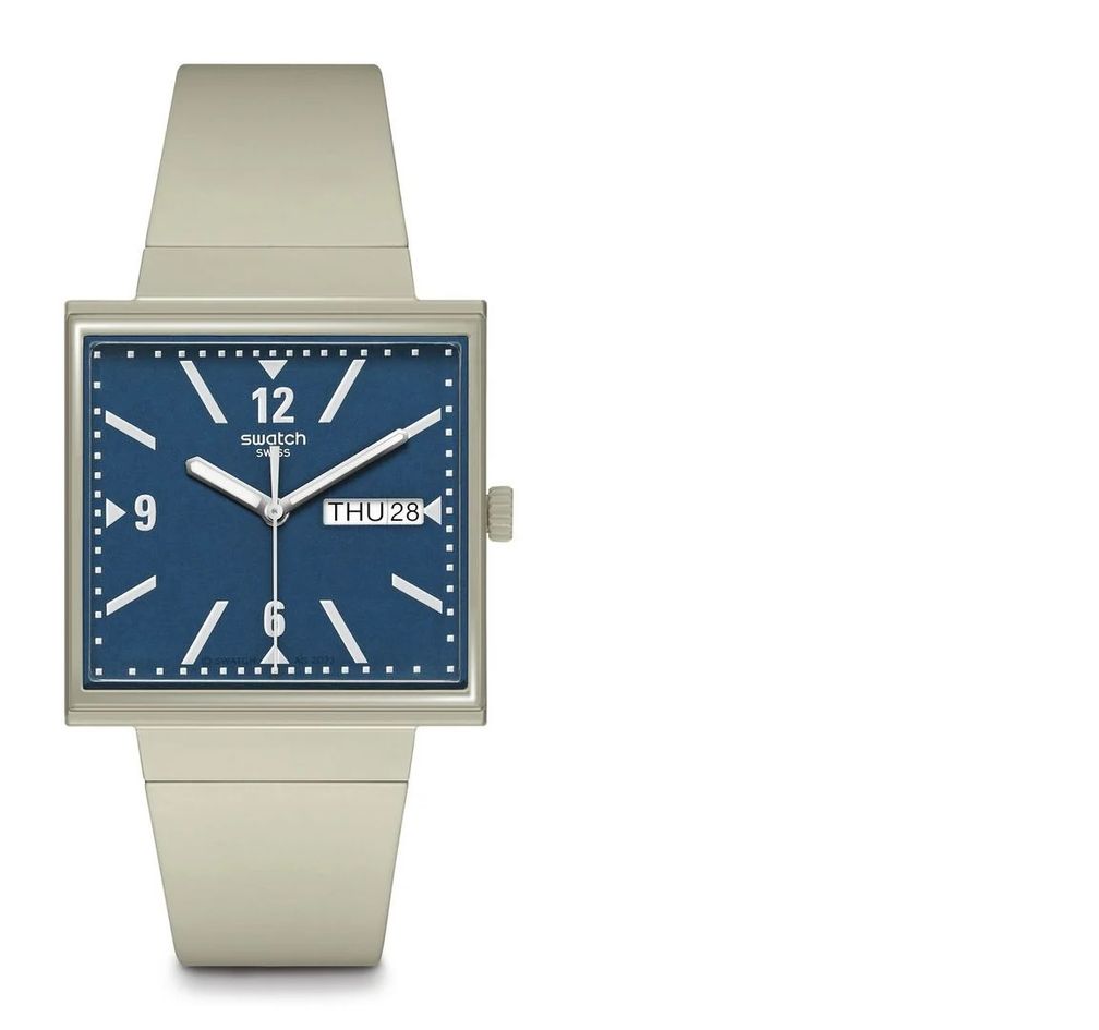 В 1982 году, когда компания Swatch работала над созданием своих первых часов, она создала прототип часов в квадратном корпусе. Эта модель была отложена в пользу круглого корпуса Gent, когда в 1983 г. был запущен бренд Swatch. Спустя 40 лет компания Swatch вновь обратилась к прототипу, который мог бы стать ее первыми часами, и в результате была создана коллекция квадратных часов What If.