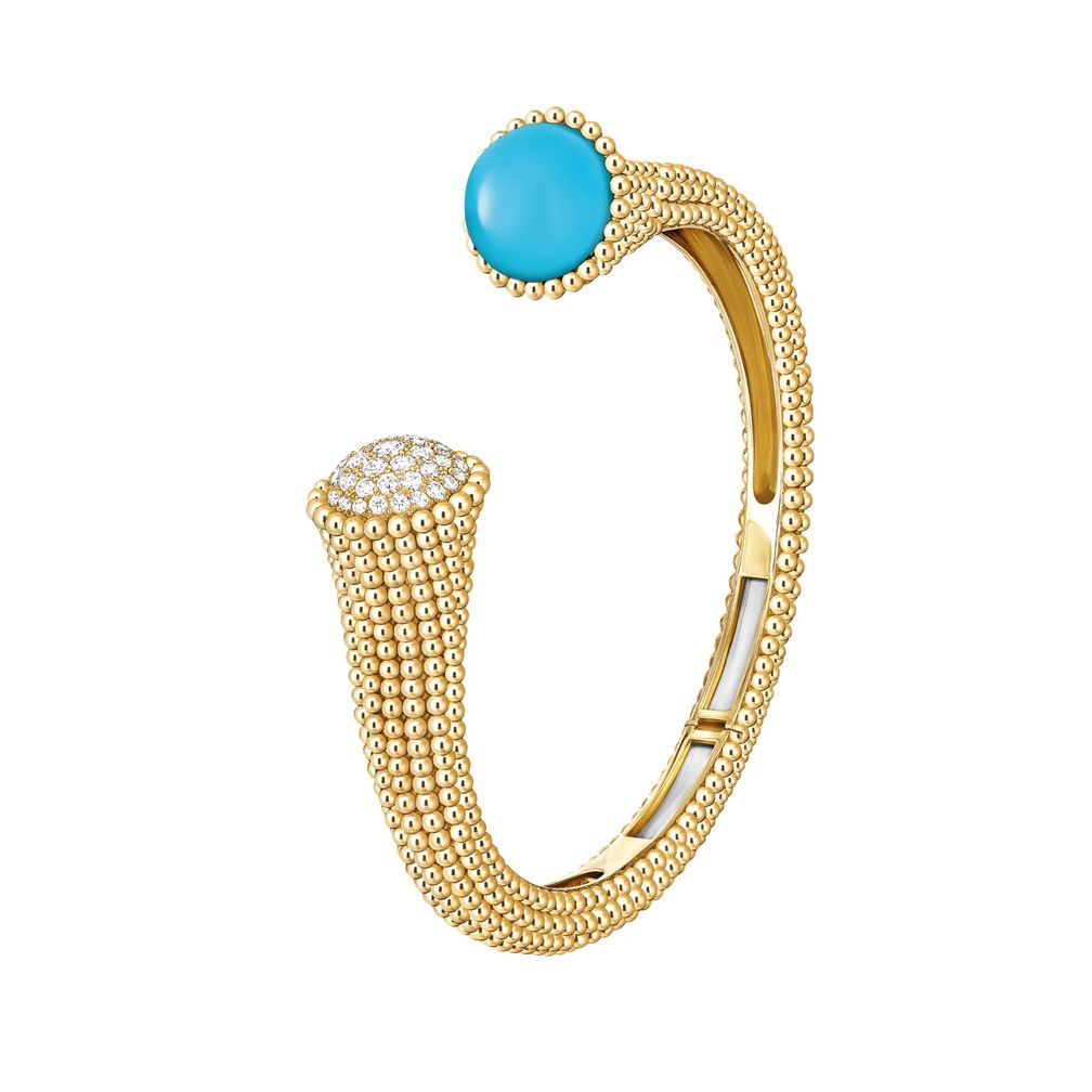Параллельно Дом расширяет свой ассортимент тремя новыми великолепными изделиями: кулоном, браслетом и кольцом из желтого золота, украшенным бирюзой и бриллиантами. И здесь свет – главный герой.
