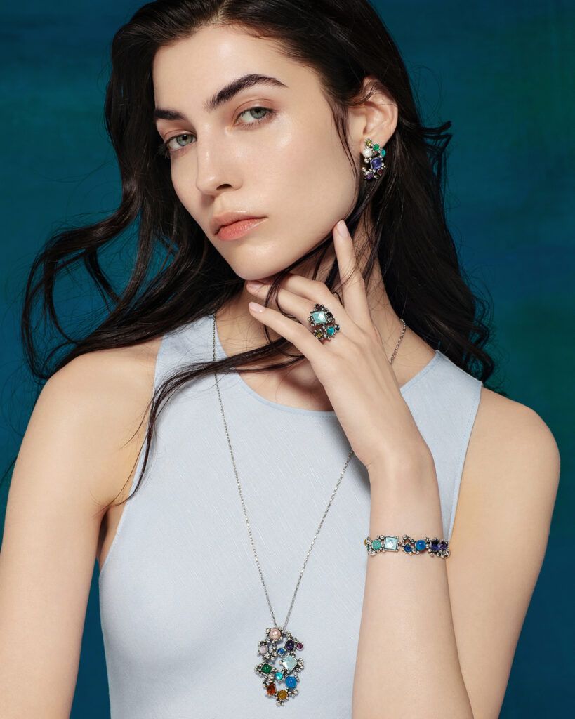 В коллекции Cocktail также семь украшений: колье, кулон, браслет, три пары серег и кольцо.