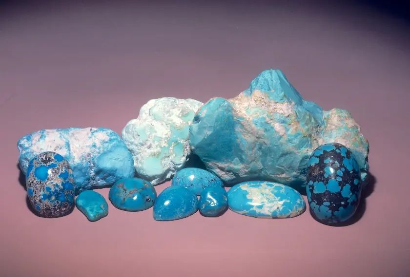 Высококачественная бирюза обычно используется в виде кабошонов, резьбы и инкрустаций, в то время как более низкие сорта представлены в виде полированных бусин или натуральных «самородков».