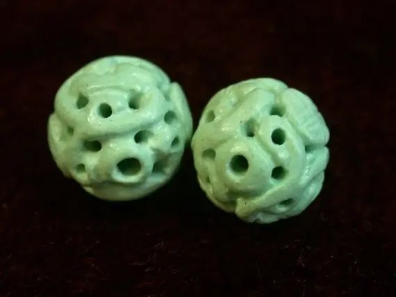 Винтажные резные бусины из необработанной природной китайской бирюзы, 10 мм, весом 4,9 карата каждая (фото Joel E. Arem):