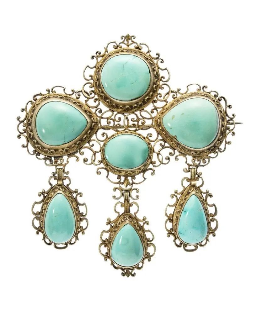 В Викторианскую эпоху бирюза приобрела огромную популярность, обычно в золотых оправах. Современные дизайнеры ювелирных изделий все чаще следуют персидским и викторианским традициям, оправляя бирюзу в золото.