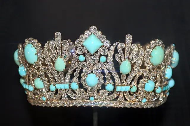 В 1810 году Наполеон подарил эту диадему своей второй жене, императрице Марии-Луизе. Первоначально в эту потрясающую корону из золота и серебра были вставлены бриллианты и изумруды. В 1950-х годах изумруды были изъяты и проданы по отдельности. Позже они были заменены на 79 камней персидской бирюзы. Диадема Марии-Луизы выставлена в Смитсоновском институте (фото Cliff):