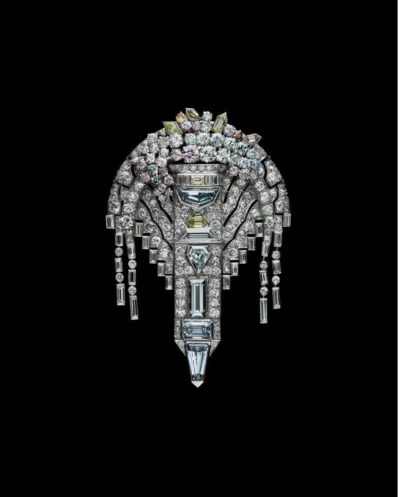 Брошь/подвеска с цветными бриллиантами в стиле ар-деко: