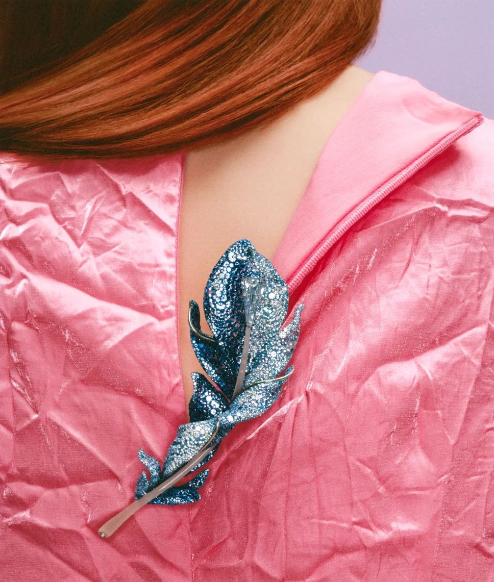 Брошь в виде пера из коллекции Art Jewel 20th Anniversary от Cindy Chao из белого золота, бриллиантов, аквамаринов и синих сапфиров: