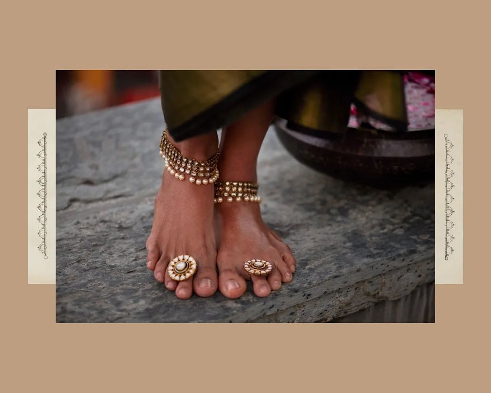 Замужние женщины традиционно носят минималистичные и современные варианты колец для пальцев ног (бичия), а также браслетов-анклетов (паял) из золота и серебра (любезно предоставлено Sunita Shekhawat, Jaipur):