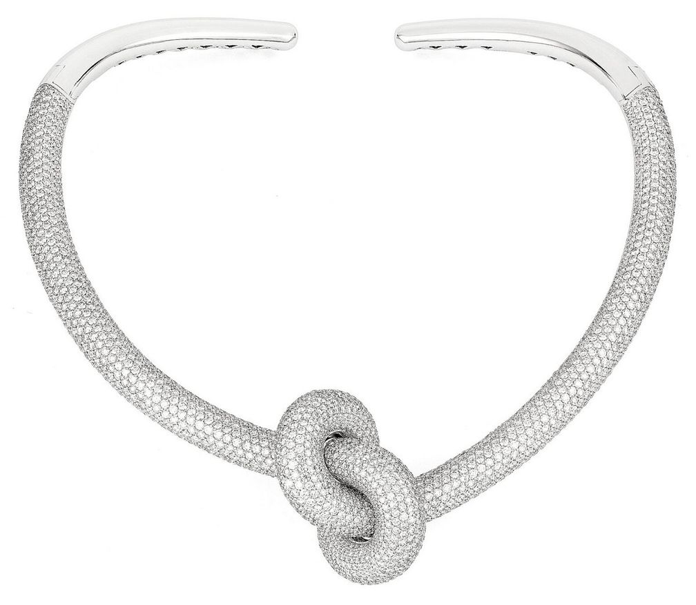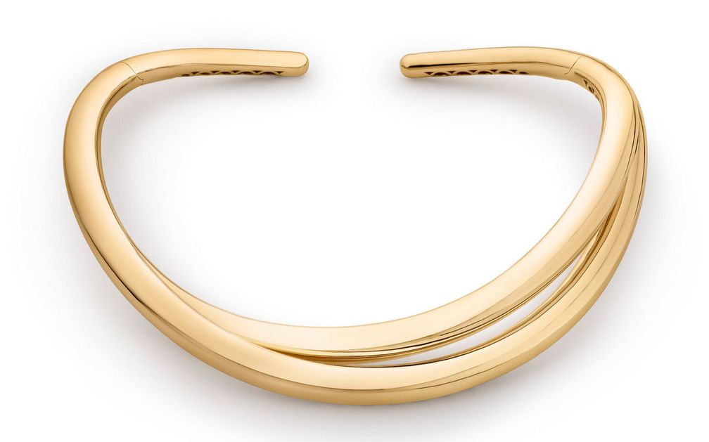 Шведский бренд Engelbert, история которого насчитывает более 100 лет, расположен в Стокгольме. Он также сделал ставку на современные колье-торки. Масштаб торков Legacy Knot поражает воображение. Символ любви, этот дизайн, как ни странно, очень удобен в носке. Он открывается с помощью петель по бокам.
