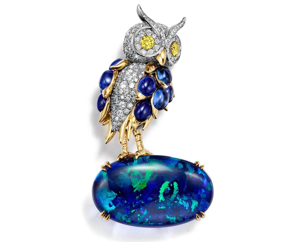 Серия брошей Owl on a Rock, представляющая собой современную интерпретацию культовой броши «Птица на камне» Жана Шлюмберже, изображает ночную птицу, сидящую на камне. Олицетворяя тайну, магию и мир духов, броши с совами изображают птицу на камне в ночное время, что соответствует духу звездного неба. Каждый мотив совы обладает ярко выраженной индивидуальностью и характером, который дополняет драгоценный камень, на котором она сидит. Черные опалы, лунные камни, танзаниты и звездчатые сапфиры создают образ луны и ночного неба.