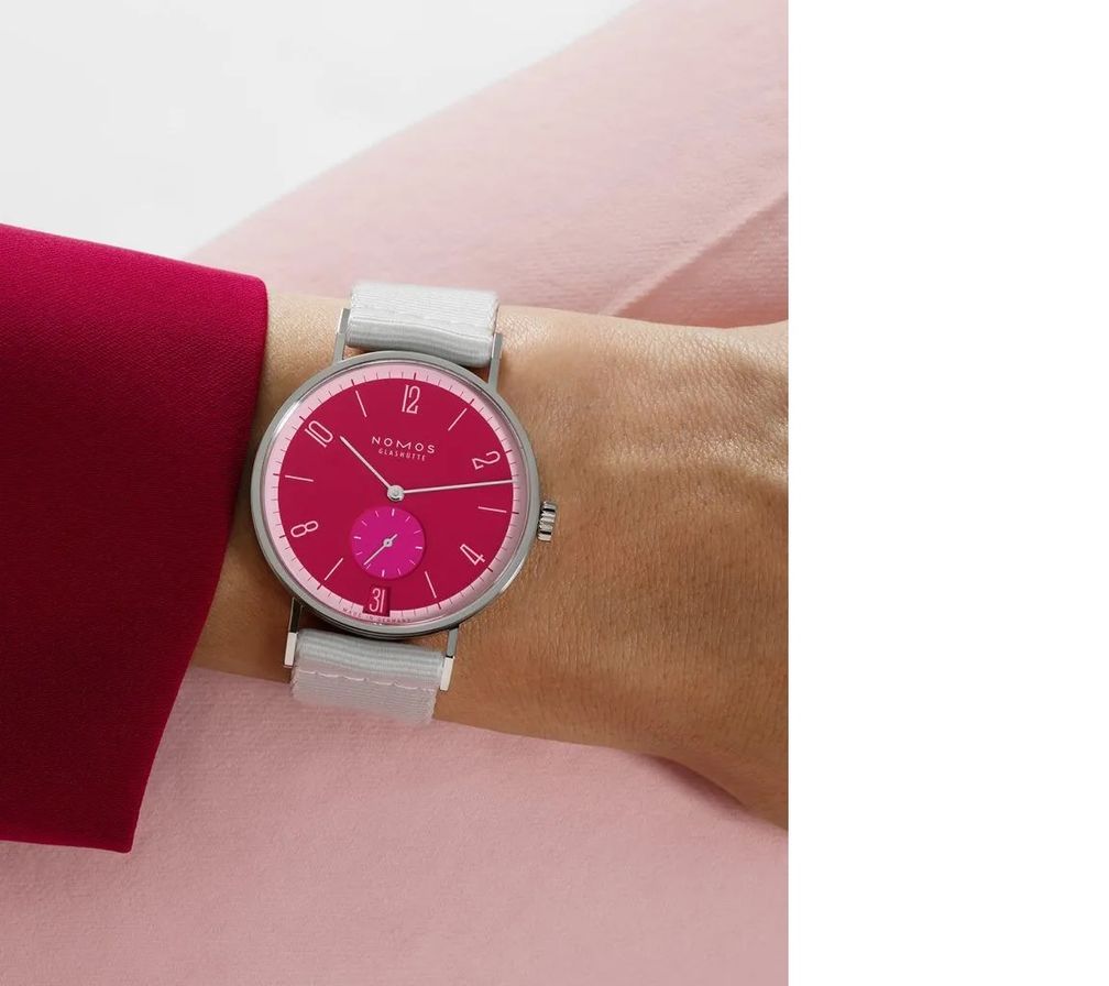 Что касается остальной части часов, то это стандартный минимализм: 37,5-миллиметровый стальной корпус с фирменными длинными ушками Nomos, небольшой секундный отсчет в положении «6 часов», печатная графика циферблата и, внутри, калибр DUW 4101 с ручным заводом, который обеспечивает 42 часа хода и виден через выставочную заднюю крышку. А какой цвет выберете вы?