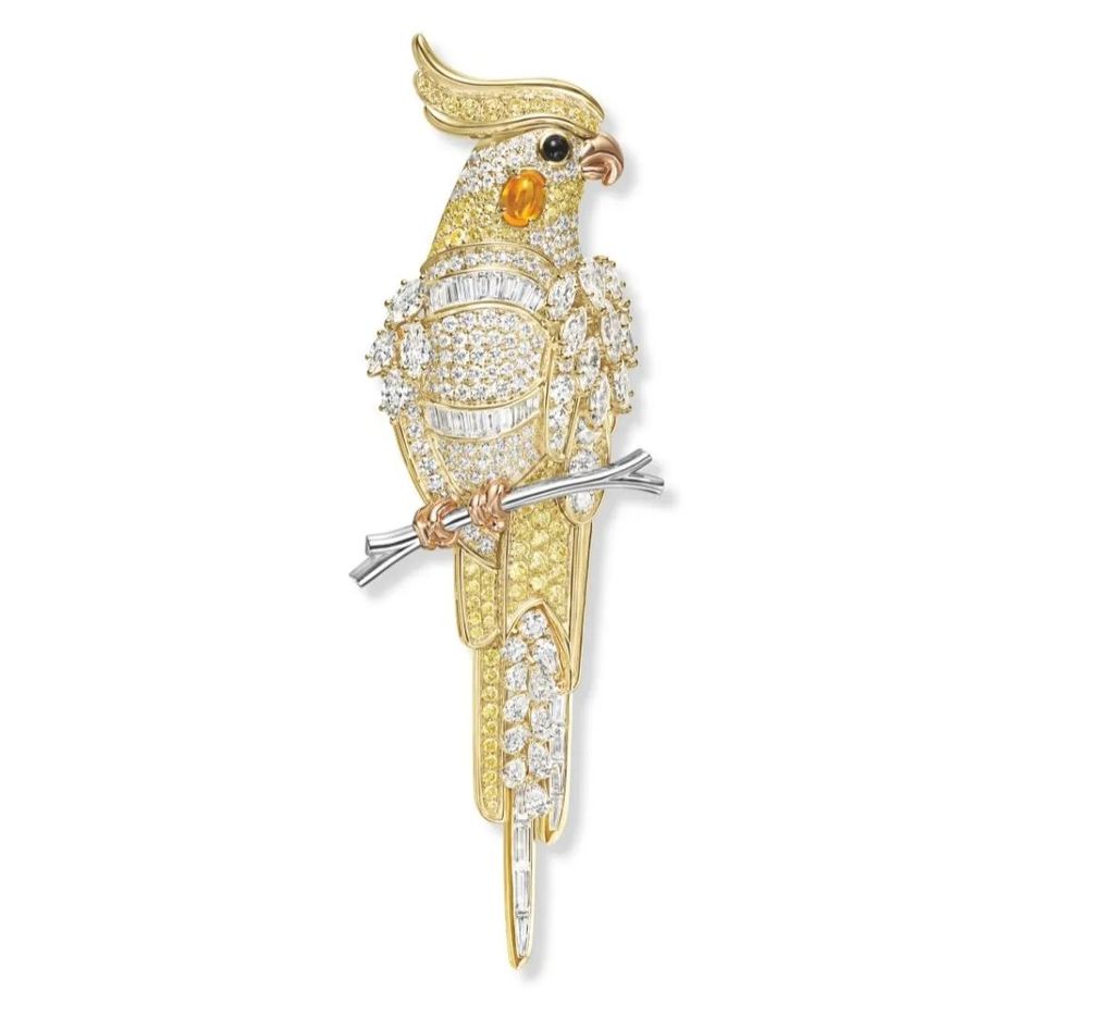 Хоть какаду часто считают элегантным домашним животным, Harry Winston использует широкий спектр огранок, белые и желтые бриллианты, а также желтое и розовое золото, чтобы передать чудесные яркие цвета перьев, которые может создать только природа.