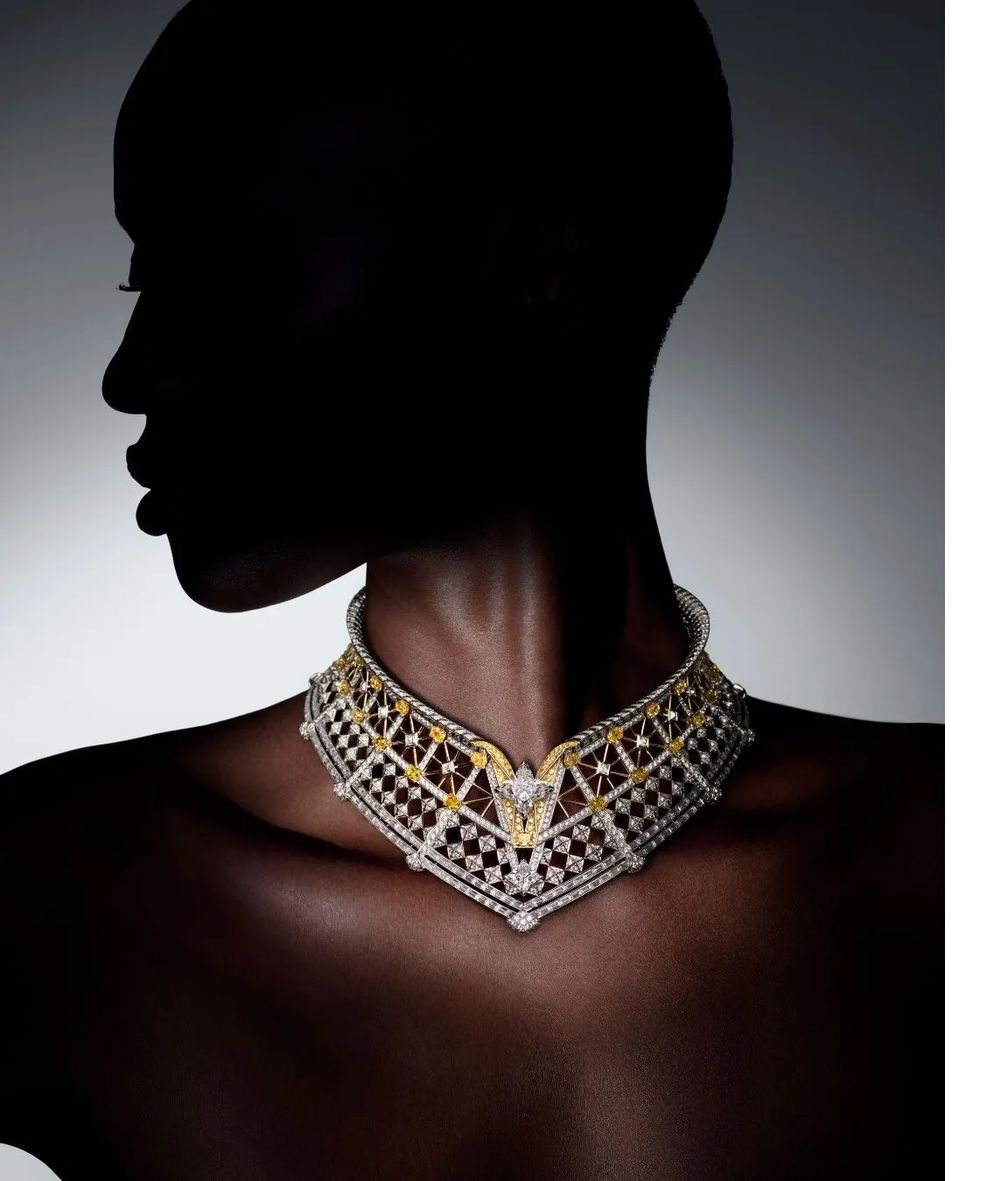 Шедевром коллекции, несомненно, является колье Victoire. Ожерелье вдохновлено Эйфелевой башней и представляет собой почти 4 000 часов работы ателье Дома. 33 желтых бриллианта протянулись по всей длине многоярусного чокера, окружая 10,43-каратный безупречный бриллиант огранки LV Monogram star, который может символизировать знаменитое сверкание башни в ночное время.