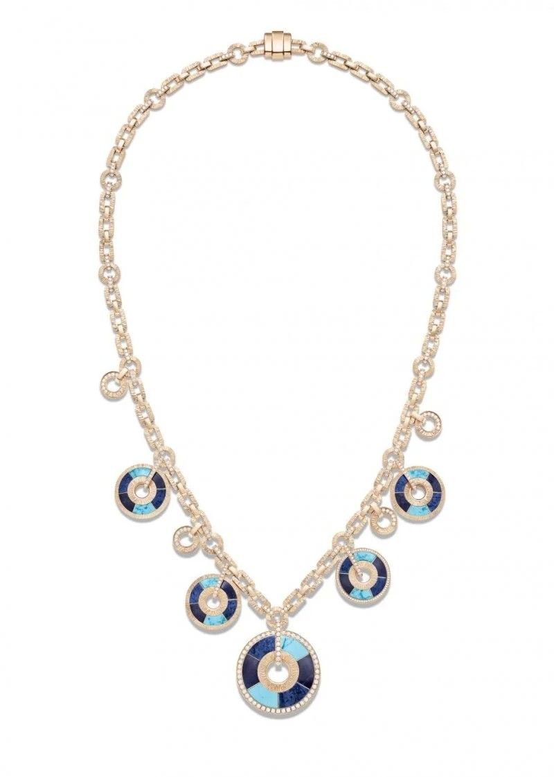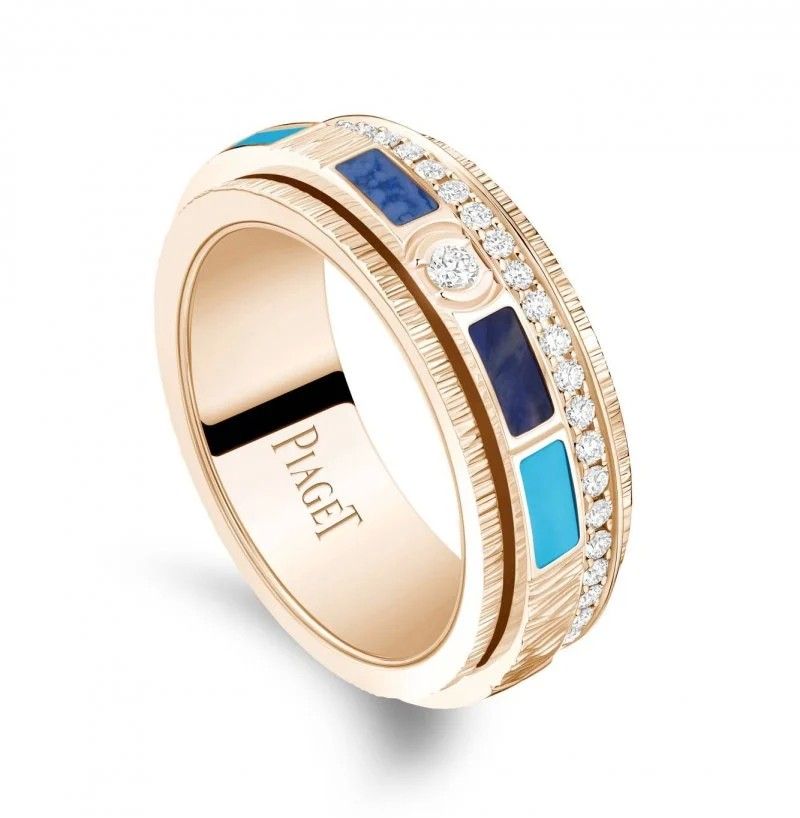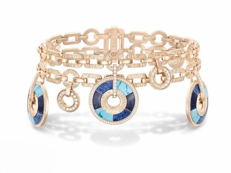 Piaget открывает новую смелую главу в своем дизайнерском наследии. Коллекция Possession Vibrant Palace (можно перевести с английского как «Обладание ярким дворцом») наполняет культовые вращающиеся модели богатством декоративных камней. Бирюза, содалит и дюмортьерит занимают в украшениях центральное место, создавая спектр сияющих синих оттенков, которые переосмысливают давний диалог Дома с цветом.