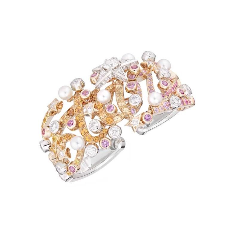 Первая глава вдохновлена свободой полета кометы и является наиболее близкой отсылкой к Bijoux de Diamants Габриэль Шанель 1932 года, ее единственной коллекции высоких украшений, в которой звезды сияли на плечах, лбах и запястьях.