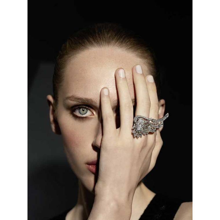 Любимый лев мадемуазель Шанель оживает в кольце Embrace Your Destiny с бриллиантом грушевидной огранки, весом 10,51 карата: