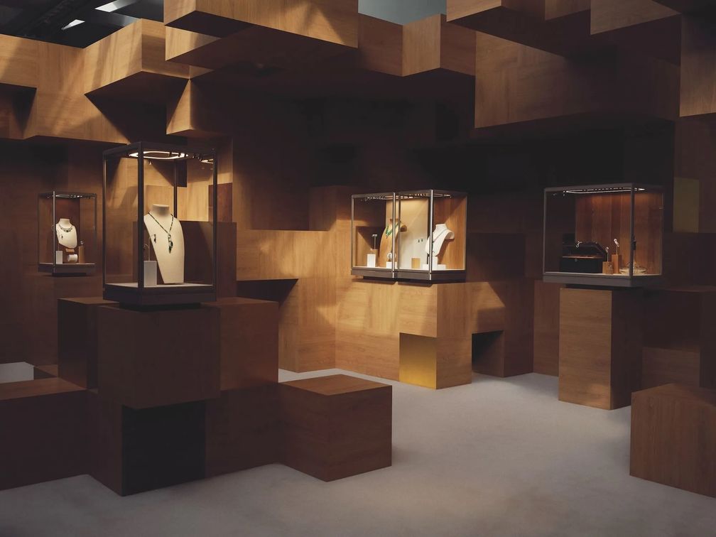 На эти несколько майских дней помещение было преобразовано в витрину, где было представлено около 115 драгоценных изделий от Cartier, в основном из коллекции En Équilibre, а также коллекция винтажных ювелирных изделий и моделей высокого часового искусства.