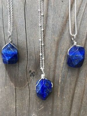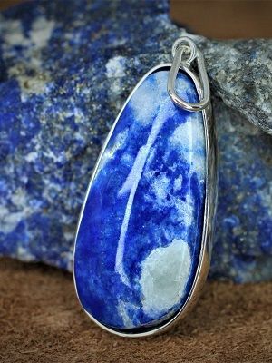Минерал для кулонов и подвесок обрабатывают преимущественно кабошоном. Можно найти украшения как более сдержанного светло-голубого оттенка, так и насыщенные бирюзовые, синие или фиолетовые. На стоимость изделия влияет происхождение минерала. Лучшие образцы добывают в Афганистане – яркие синие, с однородным окрасом с золотистыми всполохами. Обратите внимание, что такие самородки часто подделывают, окрашивая дешевые минералы. Отличить подделку очень легко – достаточно провести камнем по влажной поверхности, если он оставит цветной след, значит, это подделка.