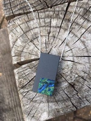 - Фантазийные. Для создания такой подвески используют неграненый азурит в разрезанном виде. Минерал может быть как плоским, так и объемным. Главная отличительная черта такого аксессуара – необычность. Глубокий синий оттенок привлекает к себе внимание, поэтому мастера стараются подчеркнуть сердцевину самоцвета. Для оправы камня они используют только серебро, чтобы ничего не отвлекало внимание от красоты самородка. На каждый день такой тип украшения не подходит, потому что некоторые экземпляры весьма увесистые и объемные. Но для встречи с друзьями или для тематического мероприятия аксессуар подойдет идеально.
