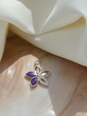 В ювелирных магазинах представлен огромный выбор подвесок с фиолетовыми самоцветами, поэтому у каждой модницы есть возможность найти аксессуар на свой вкус. Но из-за яркого оттенка минерала обновку важно умело сочетать с цветотипом внешности, гардеробом и остальными украшениями.