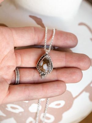 Подвеска с магнезитом – красивое украшение, которое станет интересным акцентом вашего образа. Помните, что минерал очень хрупкий и уязвимый, не допускайте небрежного обращения с ним!