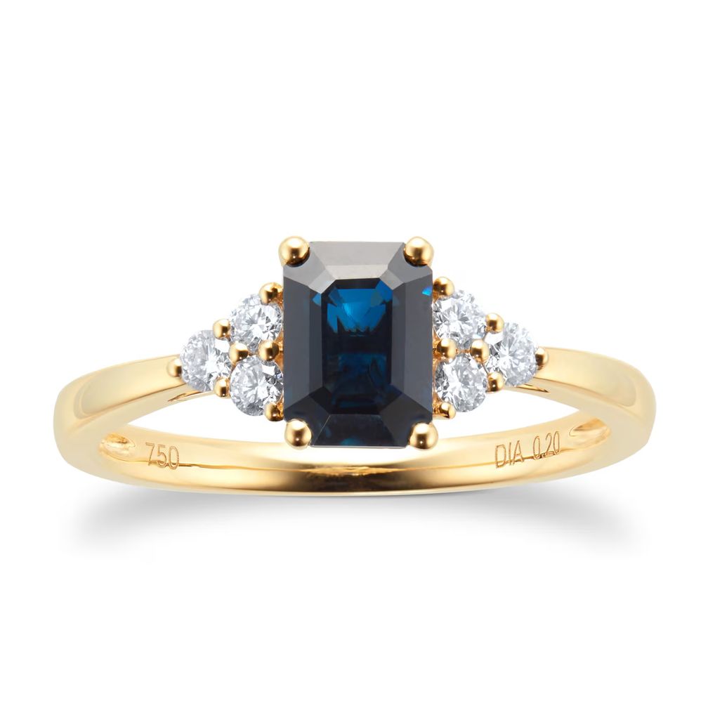 Кольцо из 18-каратного желтого золота с бриллиантами и сапфиром:
