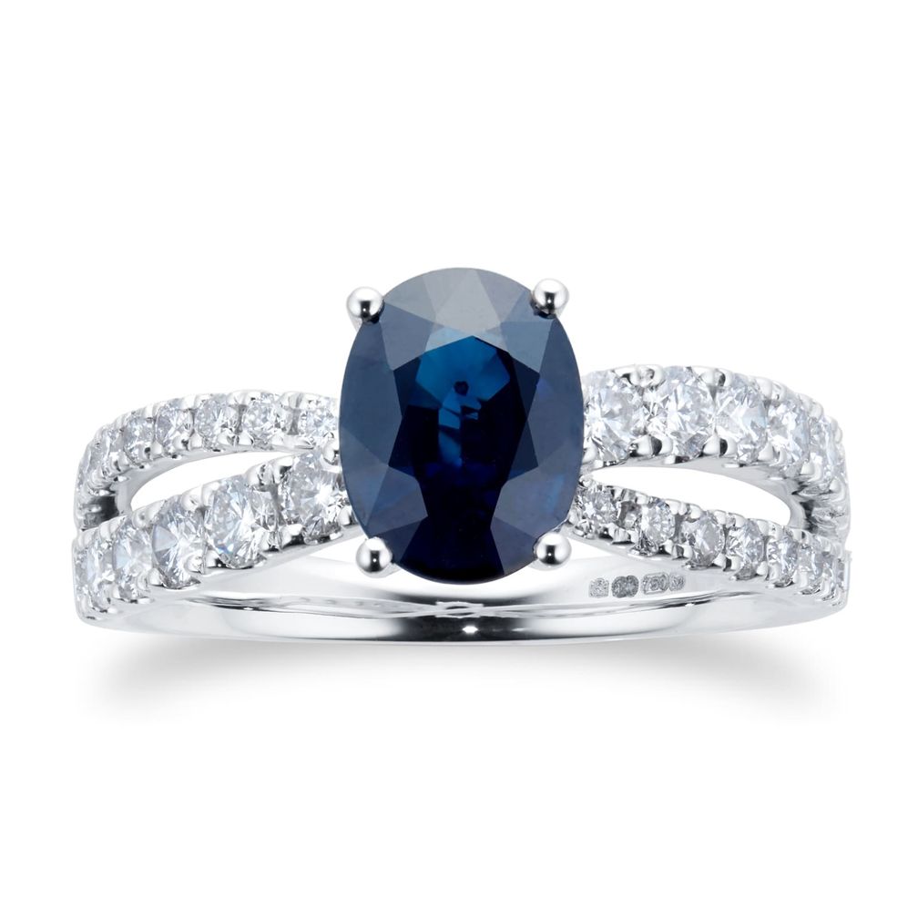 Кольцо из 18-каратного белого золота с сапфиром и бриллиантами: