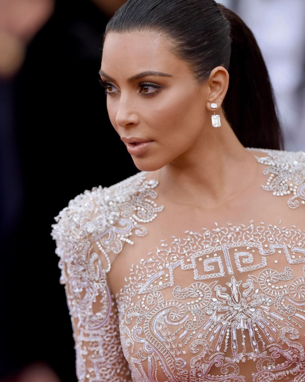Никто не может забыть гала-концерт Met Gala 2015 года, на котором Ким Кардашьян появилась, надев серьги с бриллиантами огранки изумруд весом более 33 карат от Lorraine Schwartz и прозрачное платье с замысловатой вышивкой Roberto Cavalli by Peter Dundas.