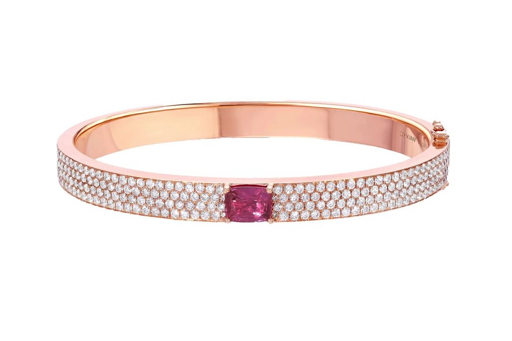 Браслет с бриллиантами рavé и рубином огранки кушон: