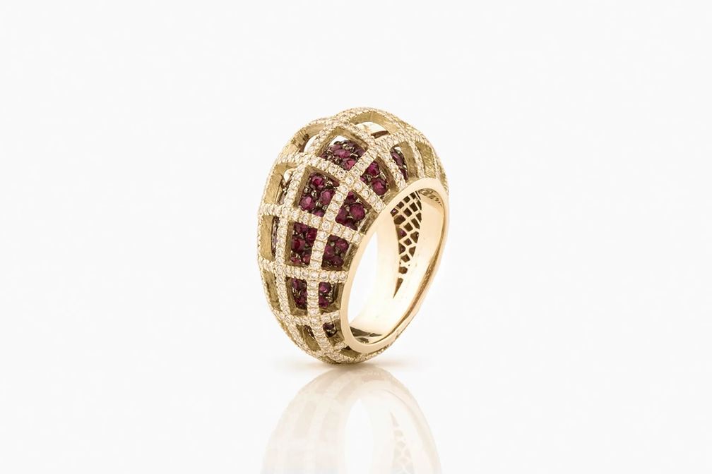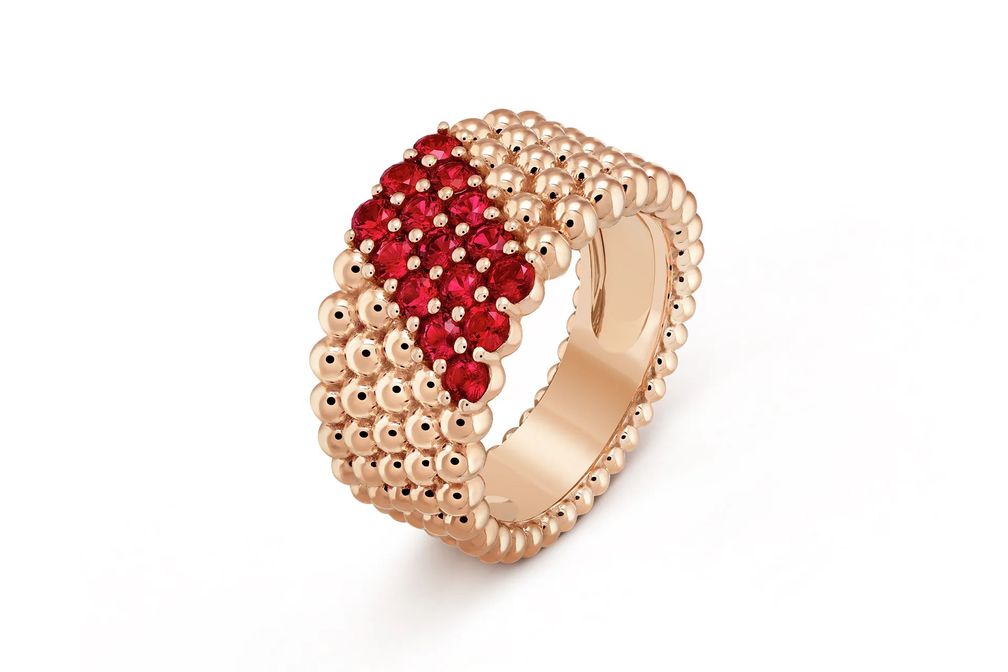 Кольцо Perlée couleurs из 18-каратного розового золота с рубинами: