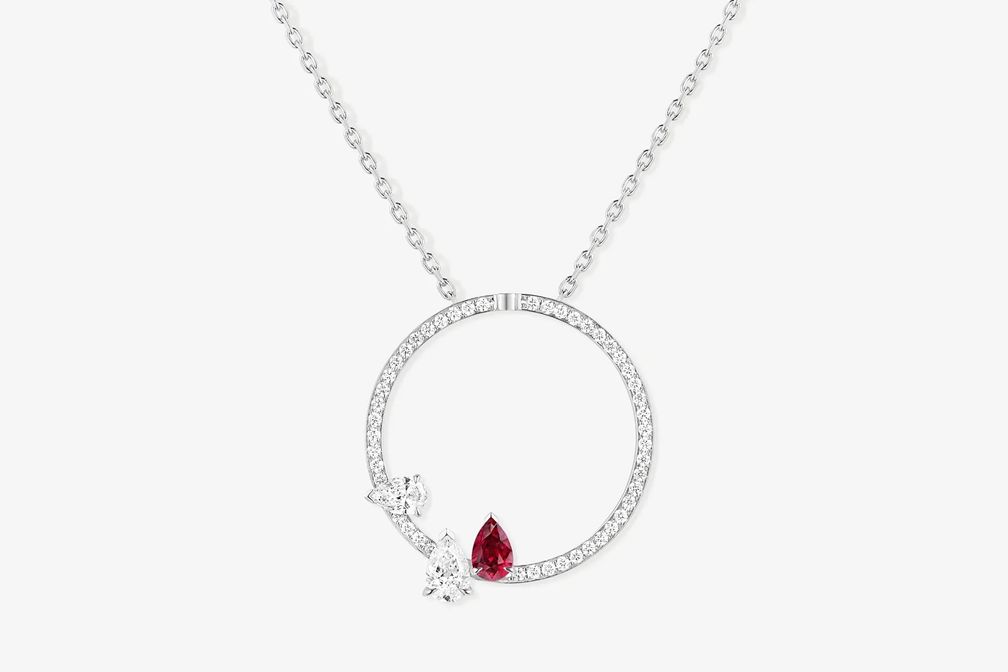 Подвеска Serti sur Vide из белого золота с 2 бриллиантами и 1 рубином грушевидной огранки: