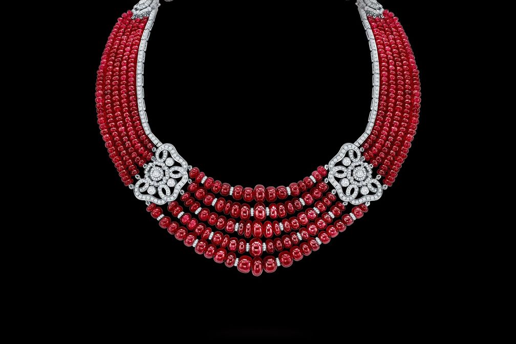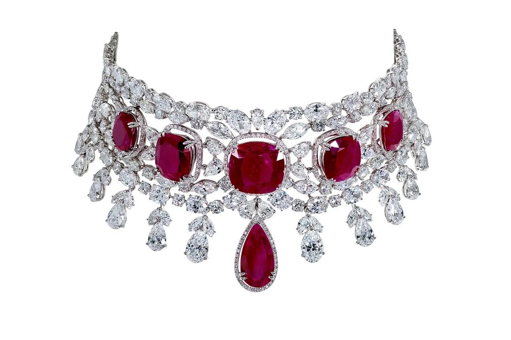 Ювелирное колье Red rose с рубинами и бриллиантами из 18-каратного белого золота:
