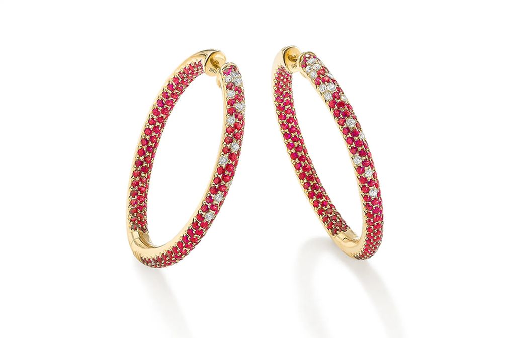Серьги-обручи Disco с рубином из 14-каратного желтого золота: