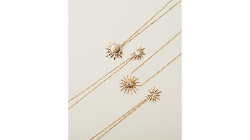 Солнечные мотивы прослеживаются во всей коллекции, ведь каждое изделие выполнено из 14- и 18-каратного золота и бриллиантов, что заставляет их сиять подобно самой большой звезде в Солнечной системе.