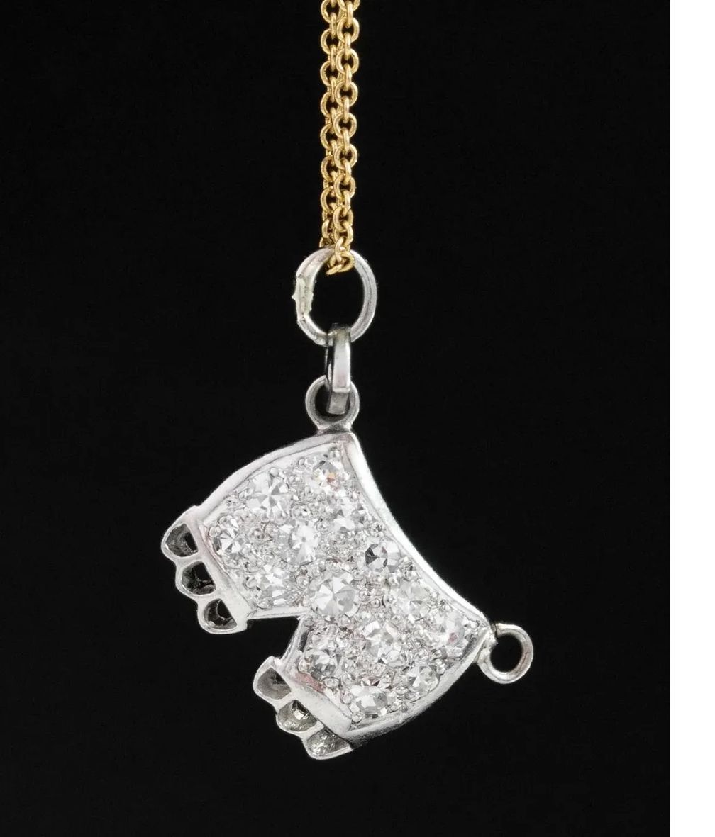 Эта винтажная подвеска с бриллиантовыми панталончиками от Jewels by Grace выглядит очень дерзко! Этот шарм изготовлен из платины и бриллиантов одинарной огранки.