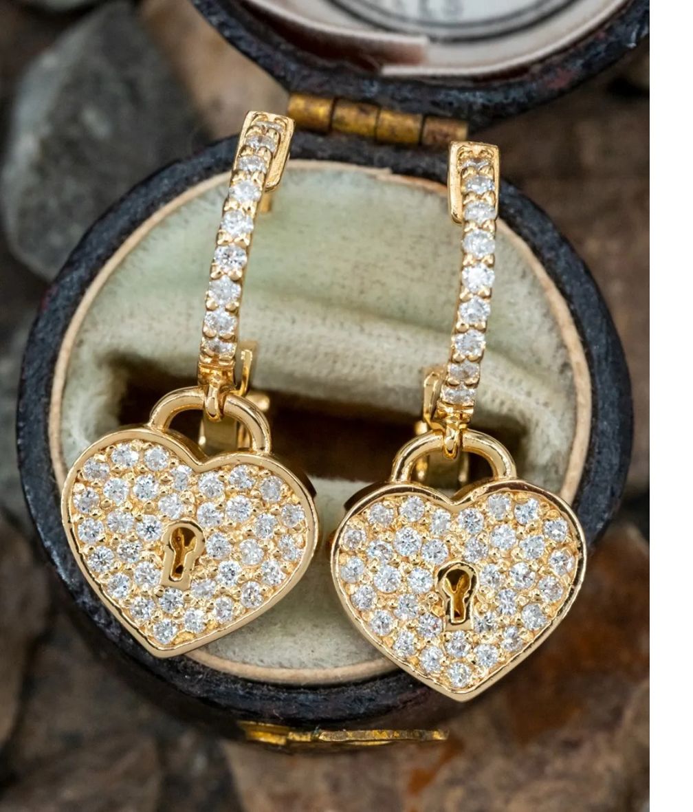 Серьги Era Gem Pavé Diamond Heart Padlock из 14-каратного желтого золота: