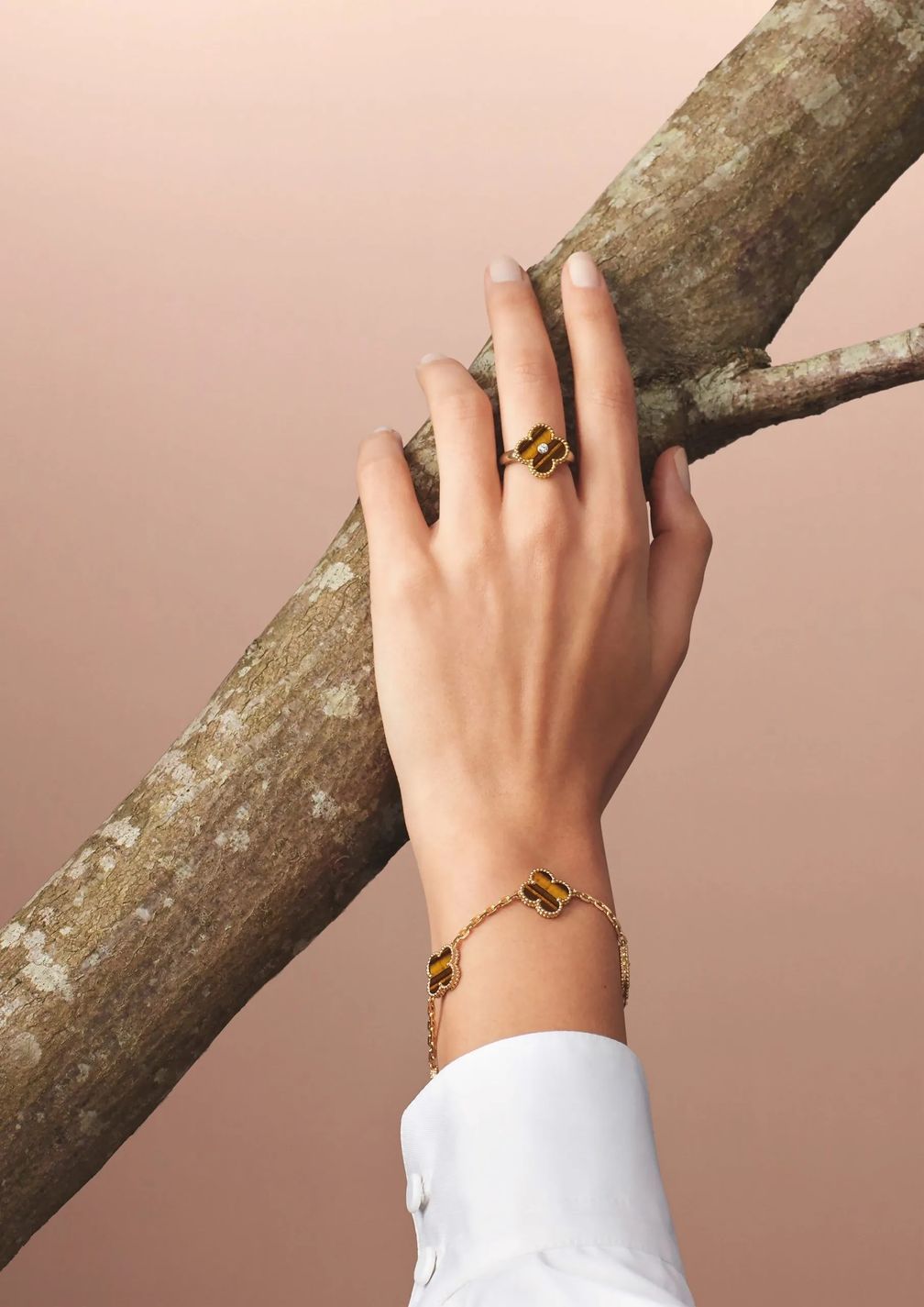 Кольцо Vintage Alhambra и браслет из желтого золота с 5 мотивами из тигрового глаза: