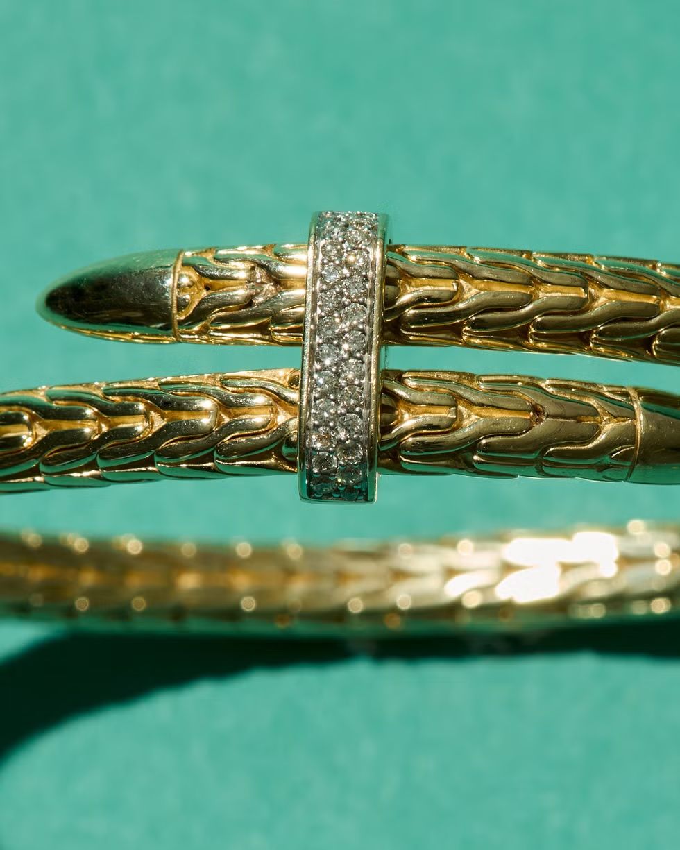 Представленный только в 2023 году, этот поразительный браслет быстро завоевал популярность в мире ювелирных украшений, заняв место рядом с легендарными браслетами, такими как браслет Cartier Love, манжета Bone Эльзы Перетти и браслет Cable от David Yurman. И все это благодаря Риду Кракоффу, который возглавляет John Hardy с 2022 года и привел бренд, вдохновленный Бали, в современную эпоху.