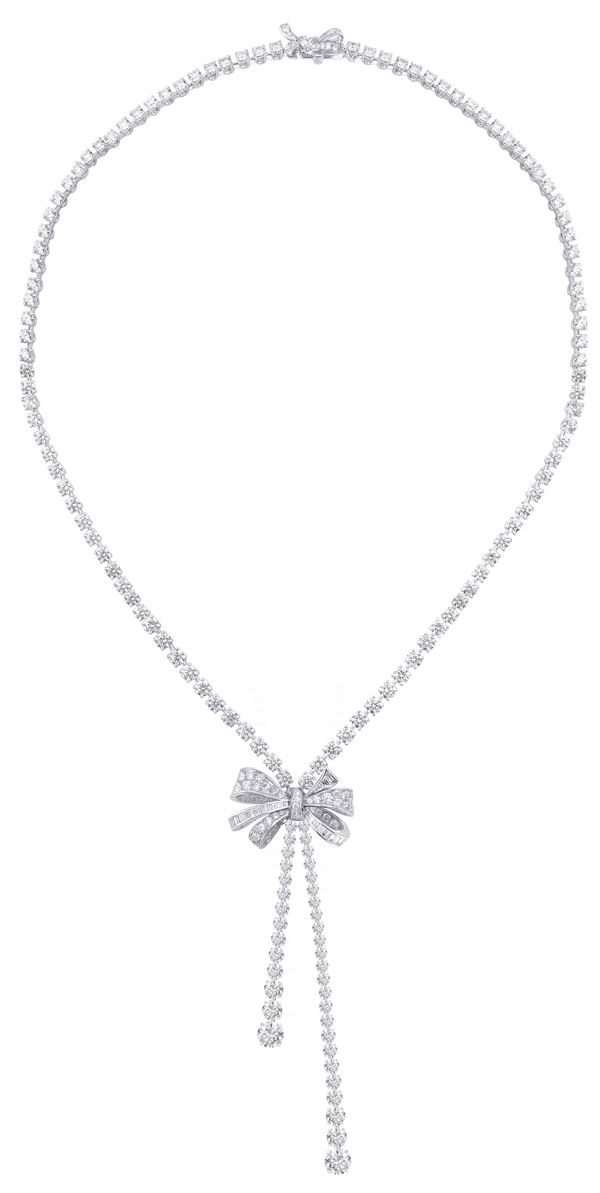 Колье Tilda’s Bow из белого золота с бриллиантами огранки багет и круглой огранки весом 9,25 карата от Graff: