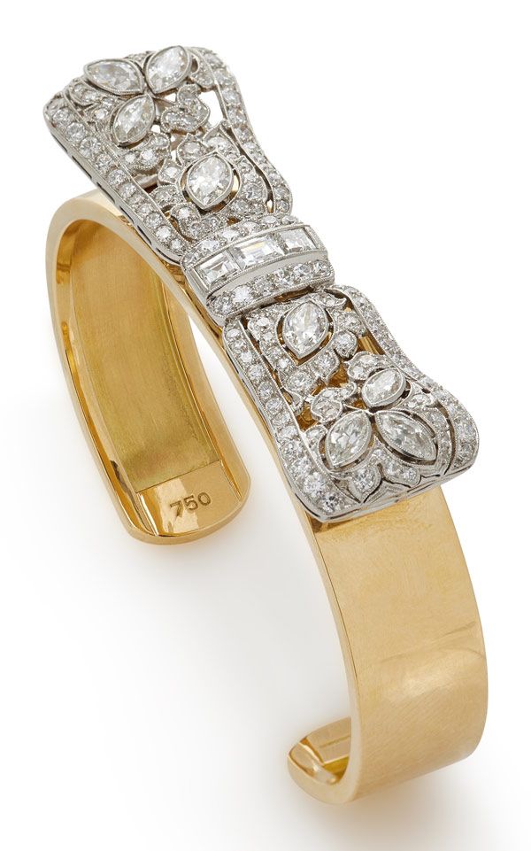 Нью-йоркская компания Stephen Russell занимается поиском самых лучших драгоценностей в мире, о чем свидетельствует этот эдвардианский браслет. Созданное вручную с невероятным вниманием к деталям благодаря бриллиантам разных огранок и размеров, имитирующим органическую форму мягкой ленты, это украшение поистине единственное в своем роде.