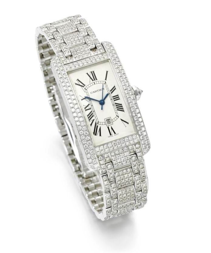- Cartier Tank Américaine Diamond: Удлиненный корпус выглядит особенно потрясающе с безелем, украшенным бриллиантами, или полностью инкрустированным. Часы выпускаются из нержавеющей стали, желтого и розового золота.
