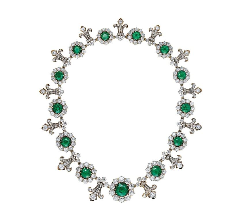 В 1878 году состоялась одна из самых известных распродаж королевских драгоценностей, когда на рынок поступили драгоценности Изабеллы II, королевы Испании. Компания Tiffany & Co. была одним из основных покупателей. Вполне возможно, что некоторые или все изумруды в великолепном ожерелье, показанном выше, были приобретены в результате этой исторической распродажи.