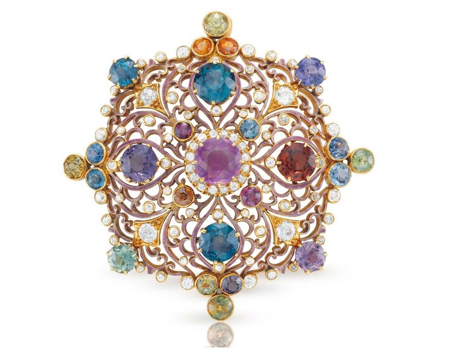 Антикварная брошь-подвеска с разноцветными сапфирами и бриллиантами в стиле Ренессанс от Полдинга Фарнхэма, Tiffany & Co.: